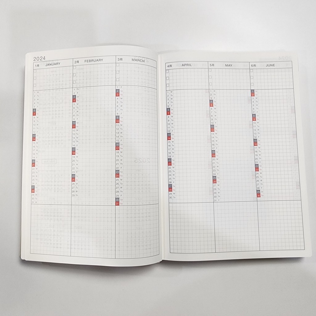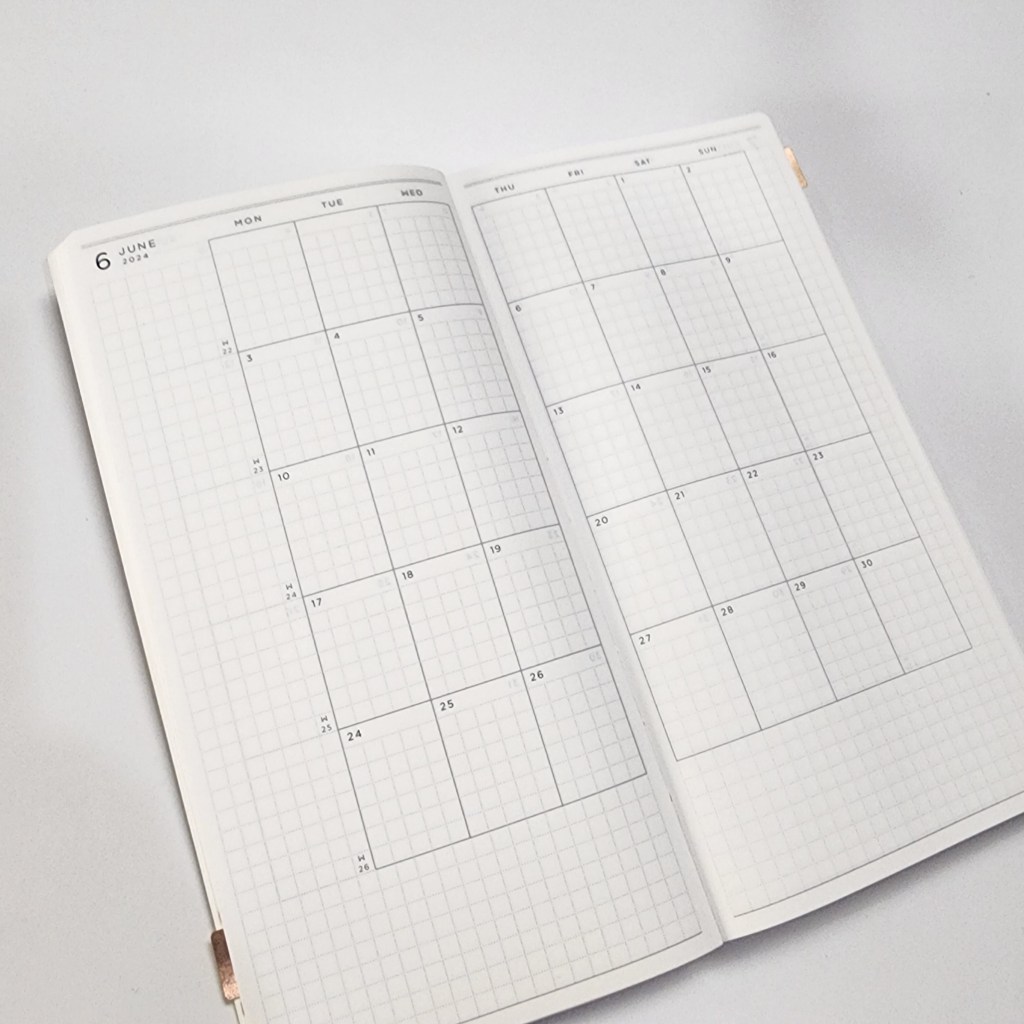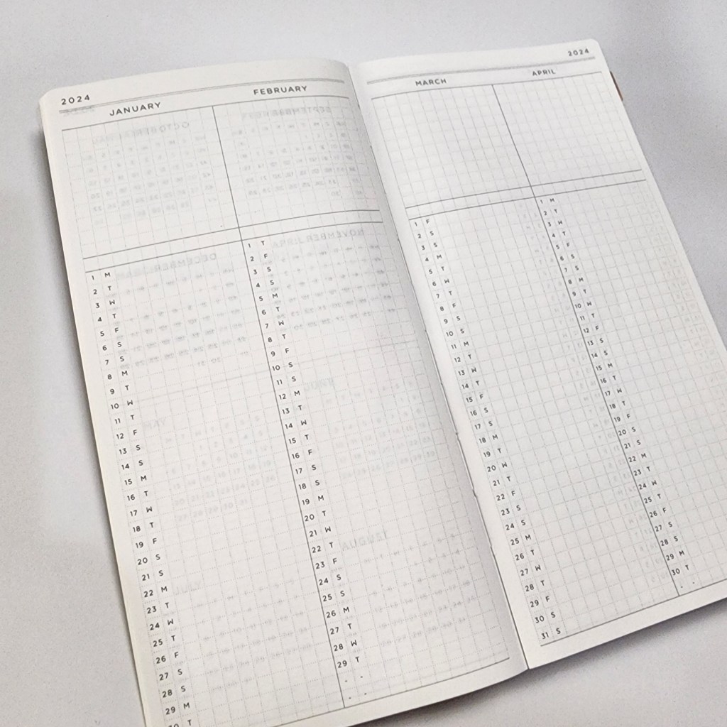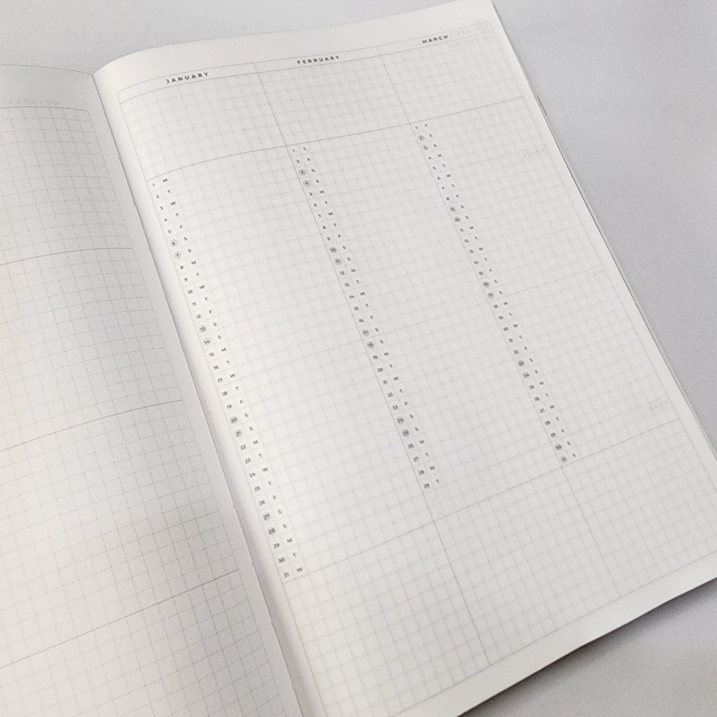 Planners that do not come with tabs will sometimes have shading on the edge of the paper as shown here. This allows you to quickly get to the month of interest in the event that you’re not a fan of having tabs protrude from your planner.