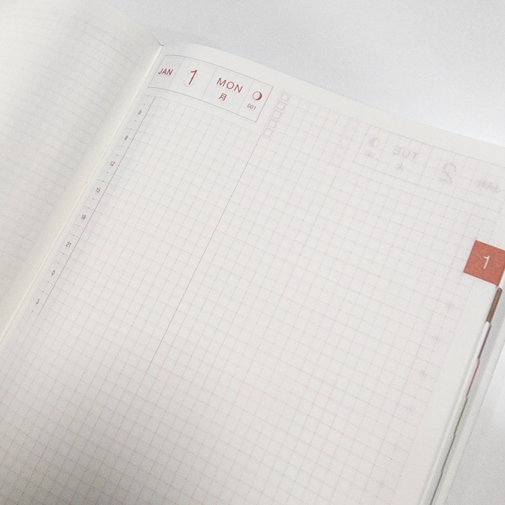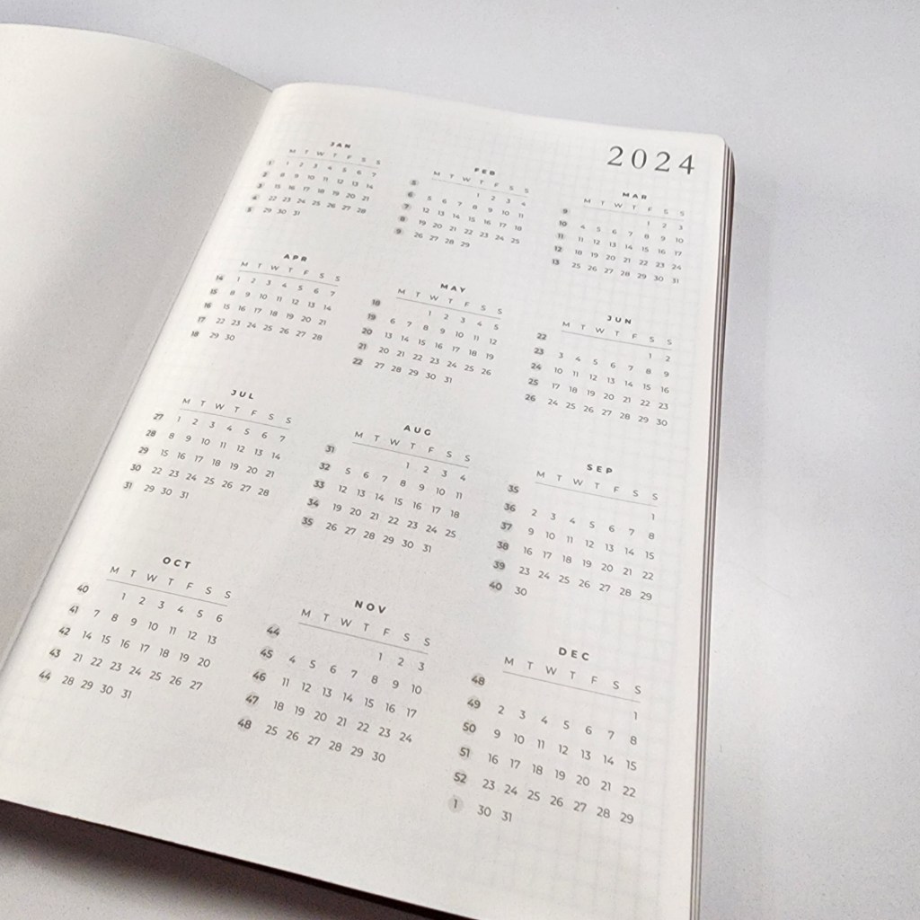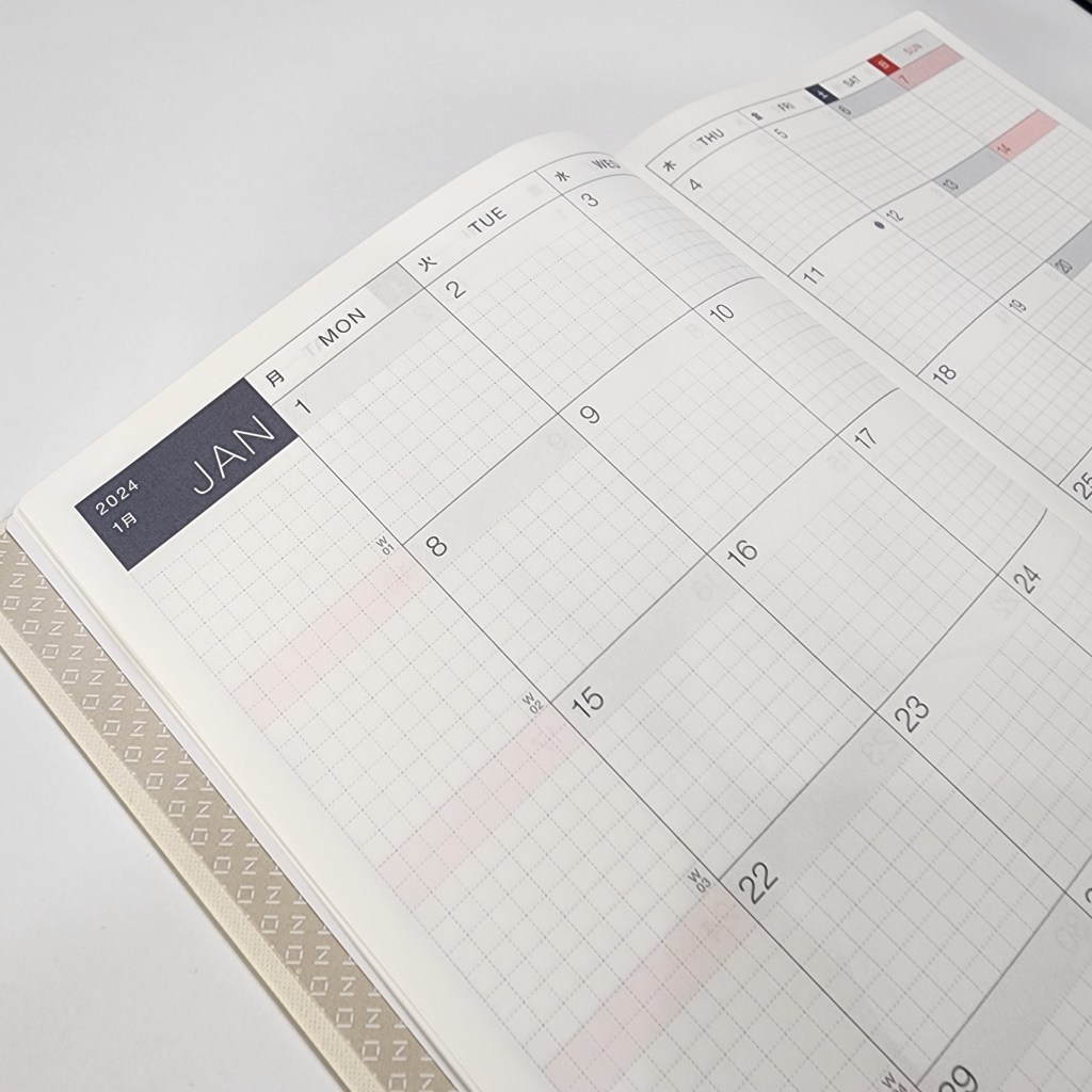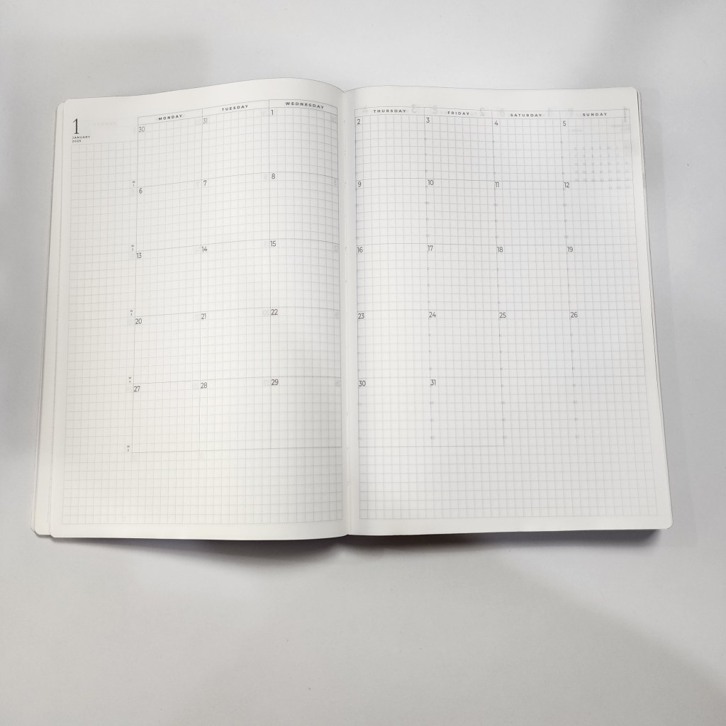 Planners that do not come with tabs will sometimes have shading on the edge of the paper as shown here. This allows you to quickly get to the month of interest in the event that you’re not a fan of having tabs protrude from your planner.